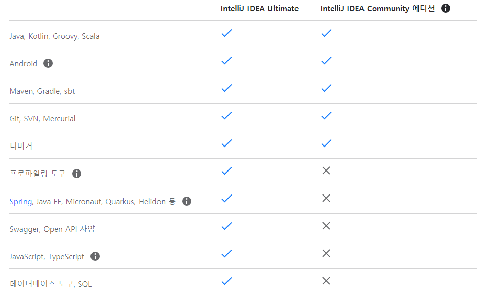 다운로드를 누르면 위와 같이 Ultimate 과 Community 버전으로 두가지가 나오는데 둘은 큰 차이가 있다.