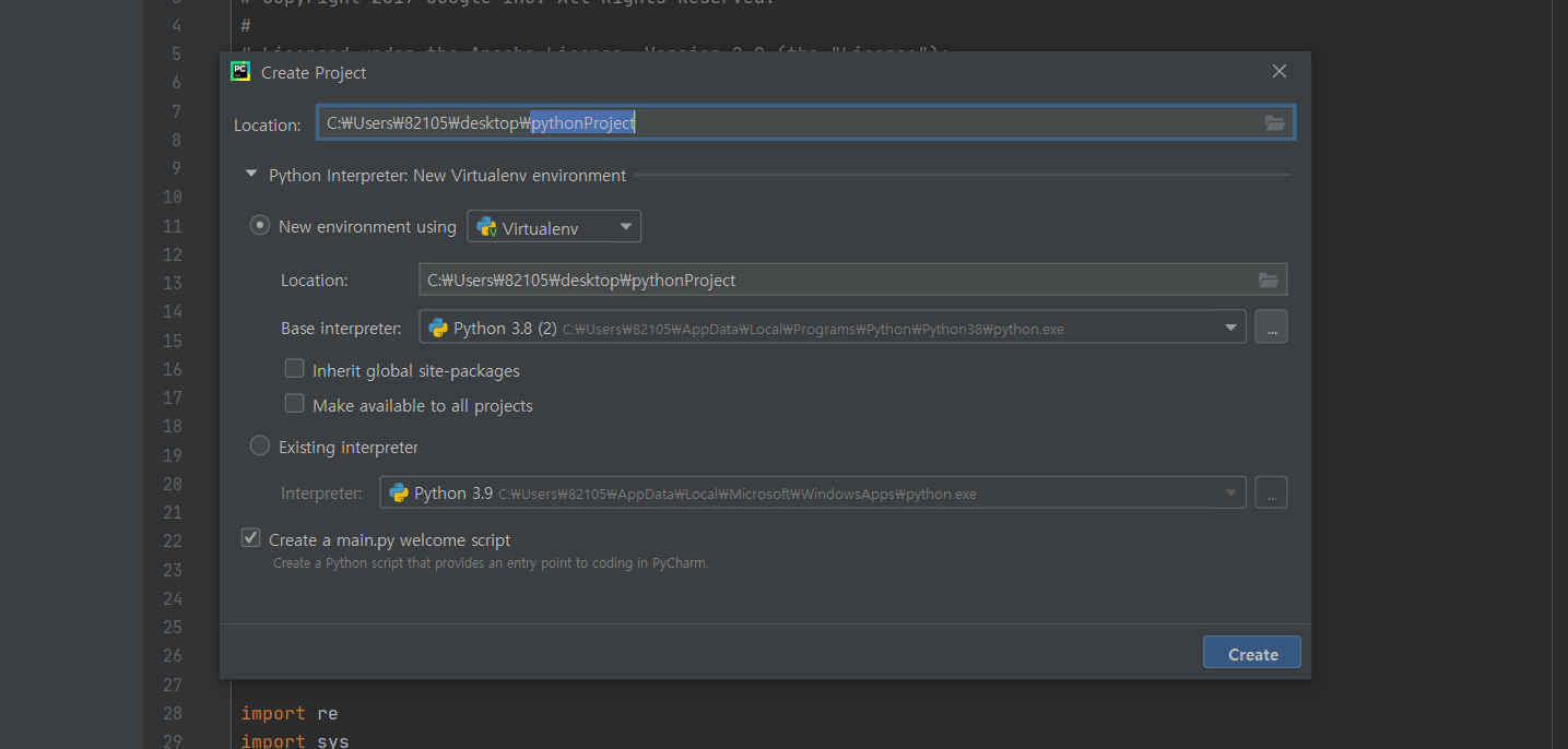 그 후 virtualenv 밑에 있는 location은 크게 상관없고 baseinterpreter가 중요